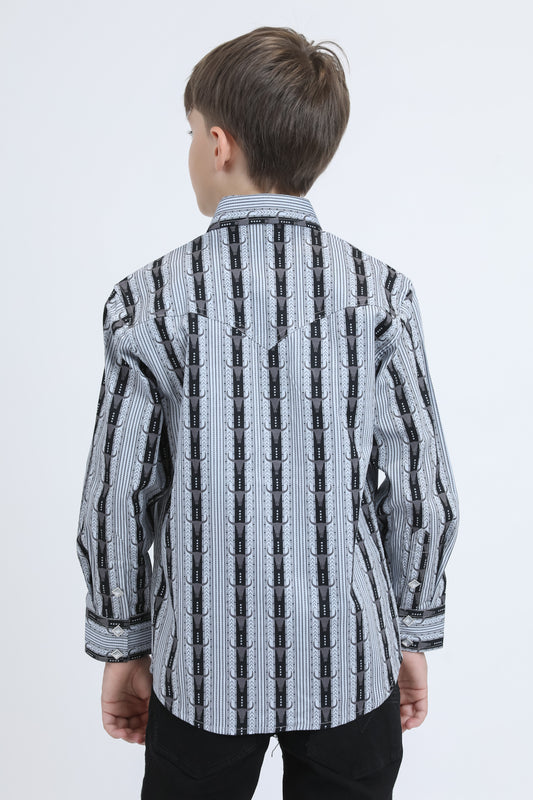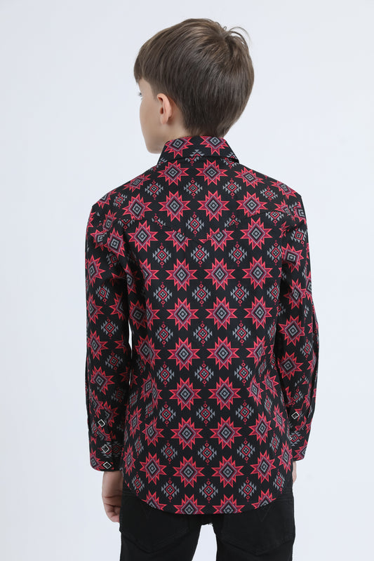 Kid's Western Modern Fit Cotton/Spandex Long Sleeve Black Shirt with Snaps