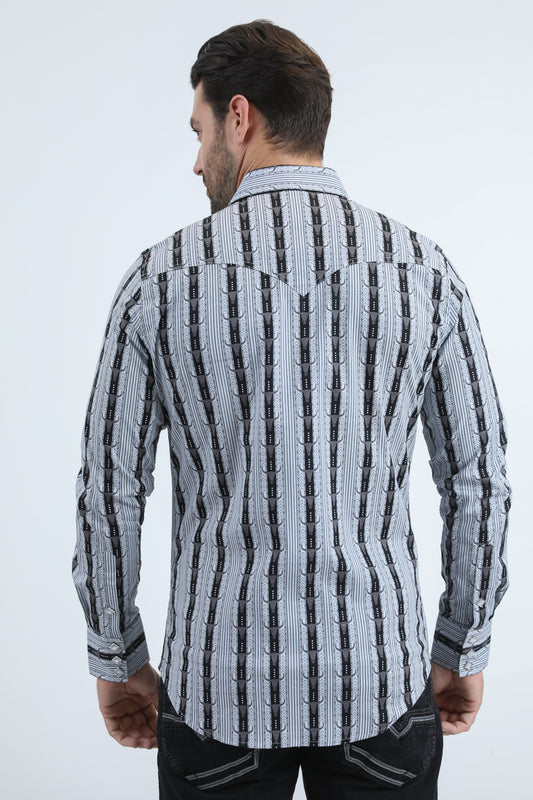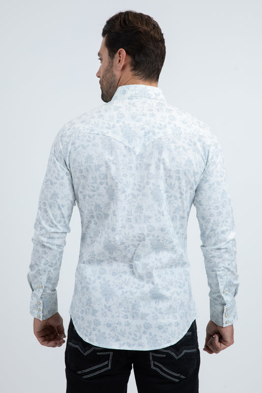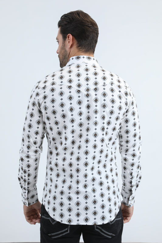 Mens Western Modern Fit Cotton/Spandex Long Sleeve White Shirt with Snaps