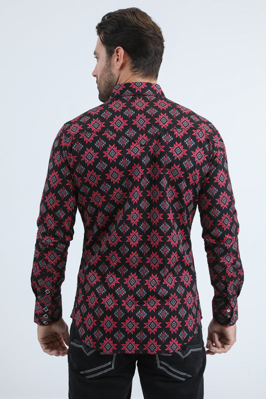 Mens Western Modern Fit Cotton/Spandex Long Sleeve Black Shirt with Snaps