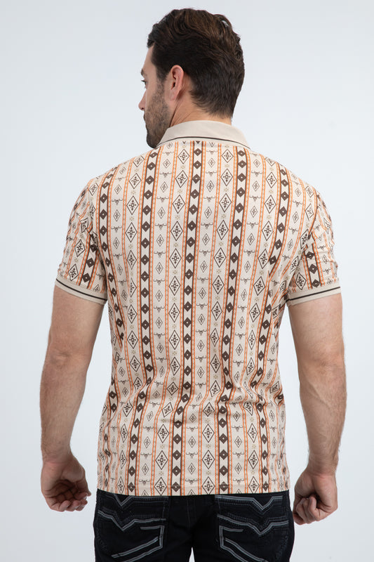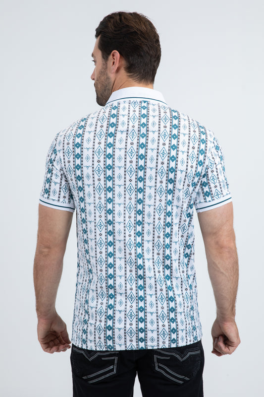 Mens Jacquard Fabric Print Modern Fit Long Sleeve White Shirt