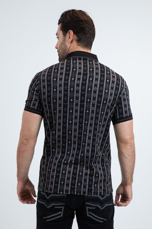 Mens Jacquard Fabric Print Modern Fit Long Sleeve Grey Shirt