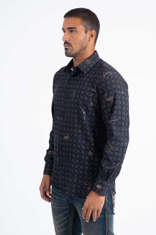 Mens Modern Fit Stretch Foil Fashion Black Shirt