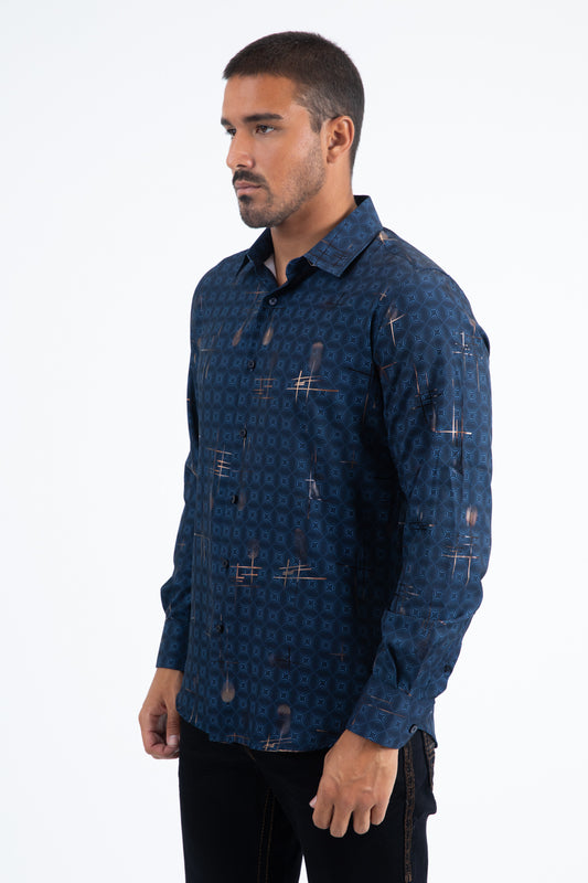 Mens Modern Fit Stretch Foil Fashion Blue Shirt