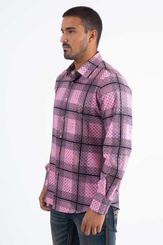 Mens Modern Fit Stretch Foil Fashion Pink Shirt