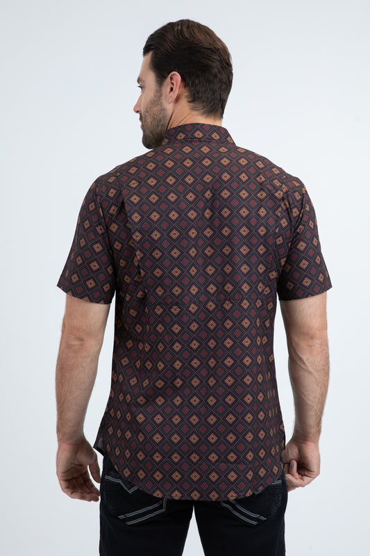 Mens Modern Fit Stretch Foil Fashion Black Shirt