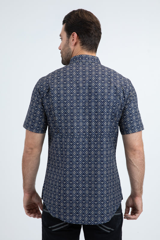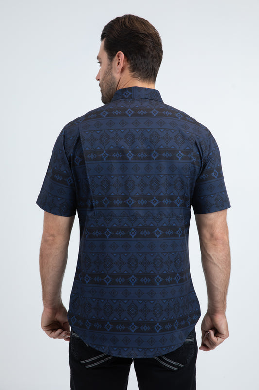 Mens Performance Classic Fit Short Sleeve Navy Shirt