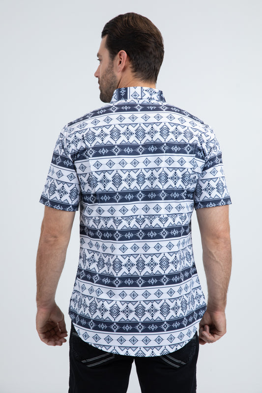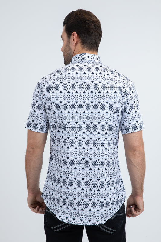 Mens Modern Fit Stretch Foil Fashion White Shirt