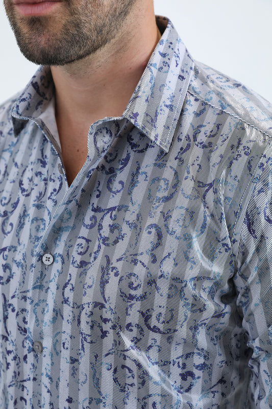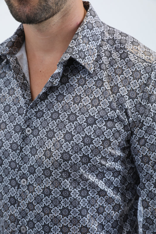 Mens Modern Fit Stretch Foil Fashion Grey Shirt