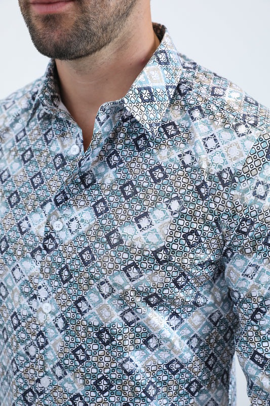 Mens Modern Fit Stretch Foil Fashion White Shirt