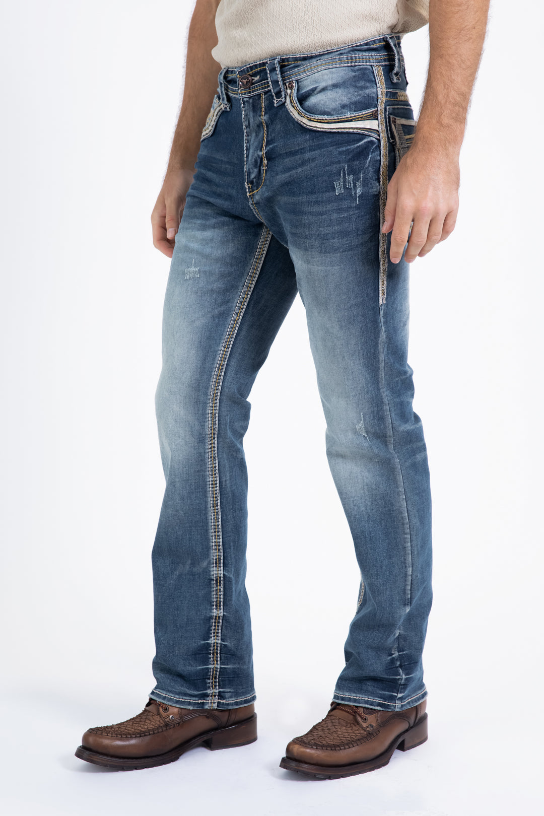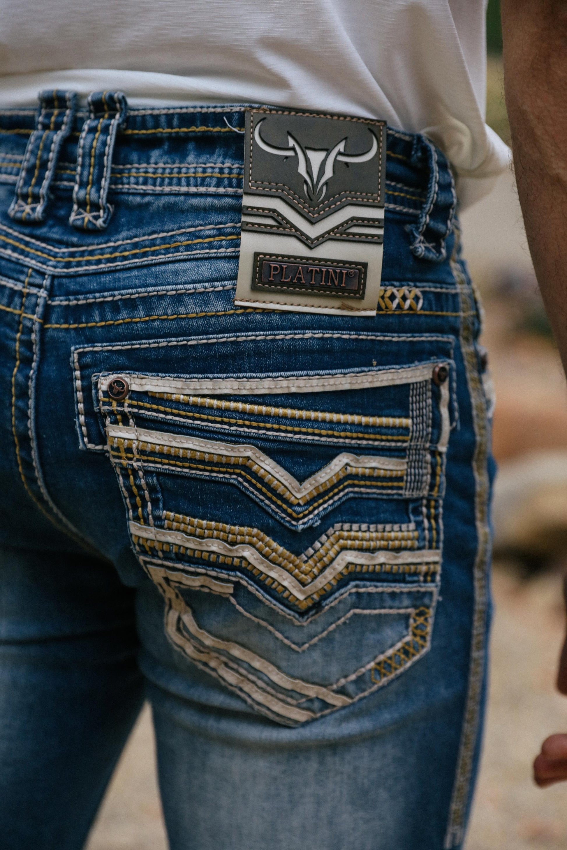 How to Wear: Pair these Platini Holt Slim Boot-Cut Jeans with a classic western shirt and cowboy boots for an authentic cowboy look. Alternatively, style them with a graphic tee and sneakers for a casual yet rugged vibe. Whether you're riding the range or heading out for a night on the town, these versatile jeans will keep you looking and feeling your best.