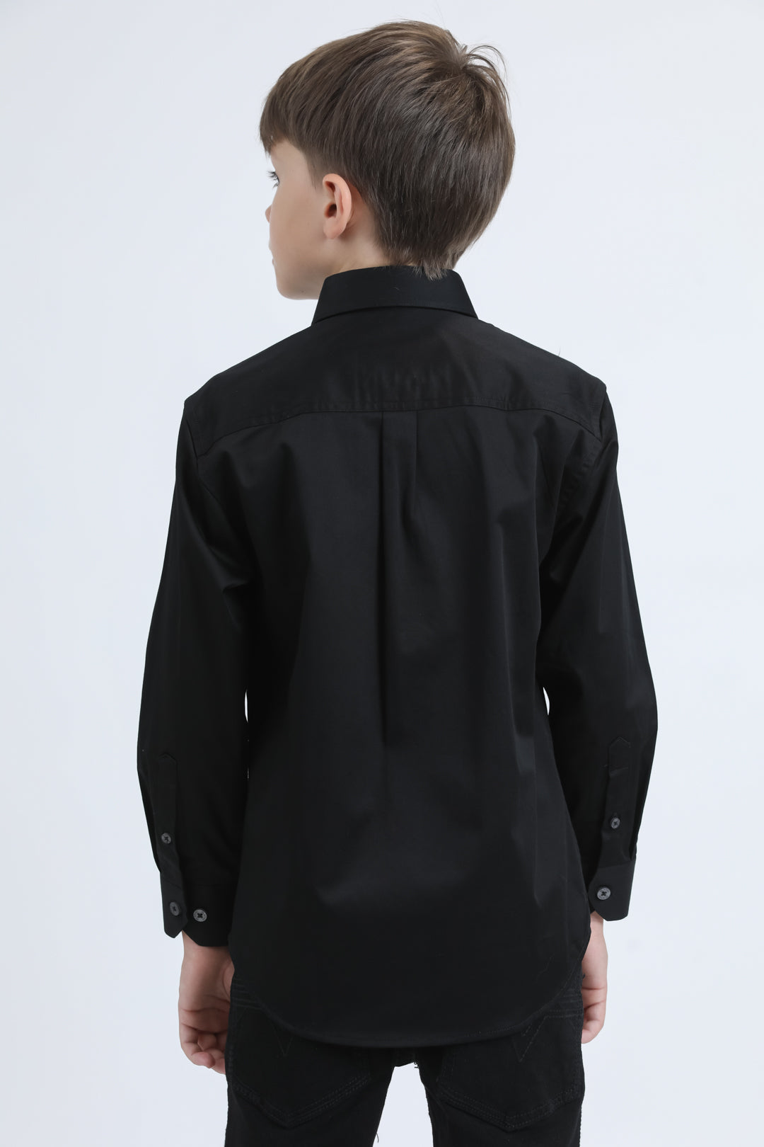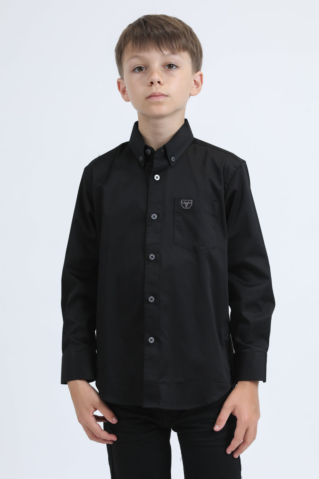 Kid´s Single Pocket Logo Modern Fit Stretch Black Dress Shirt