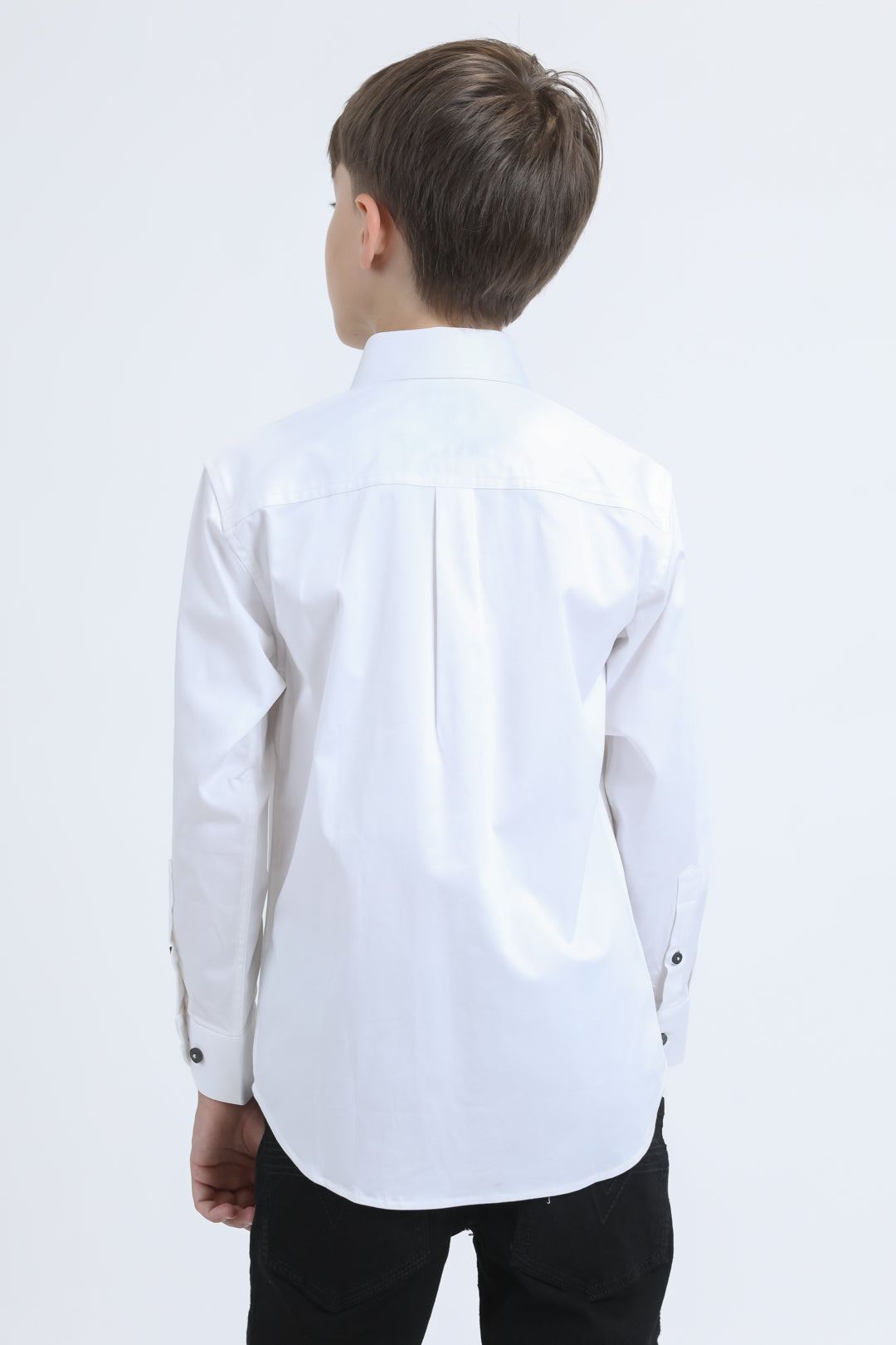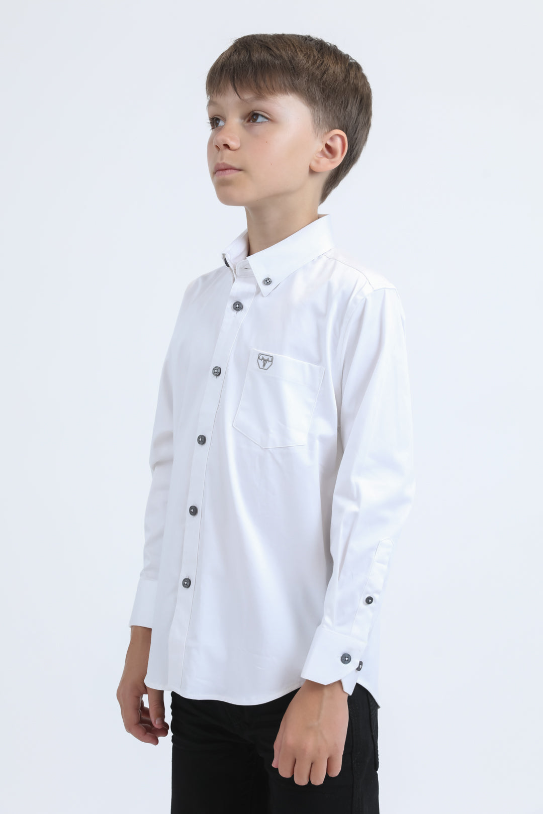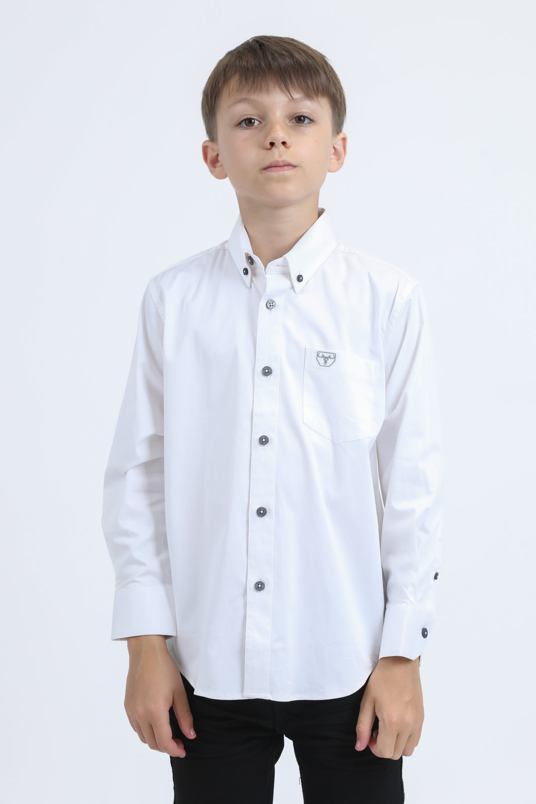 Kid´s Single Pocket Logo Modern Fit Stretch White Dress Shirt