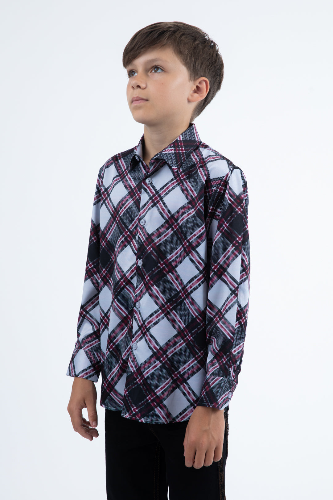 Kid's Checkered Long Sleeve Lt. Grey Shirt
