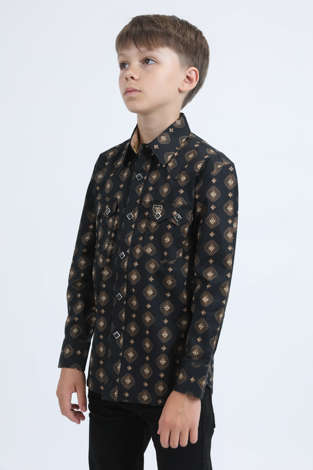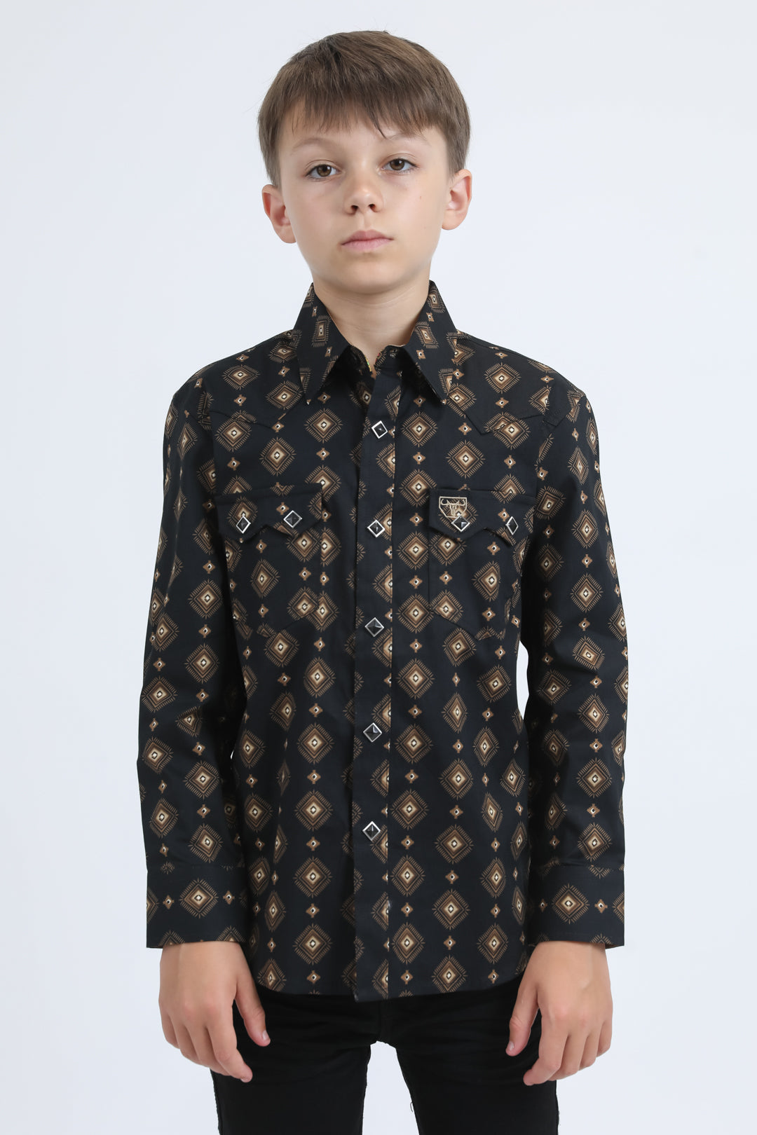 About: Dress up your little one with our Kid's Western Modern Fit Cotton/Spandex Long Sleeve Shirt with Snaps. Crafted from Stretch Cotton, this shirt offers a perfect blend of style and flexibility.
