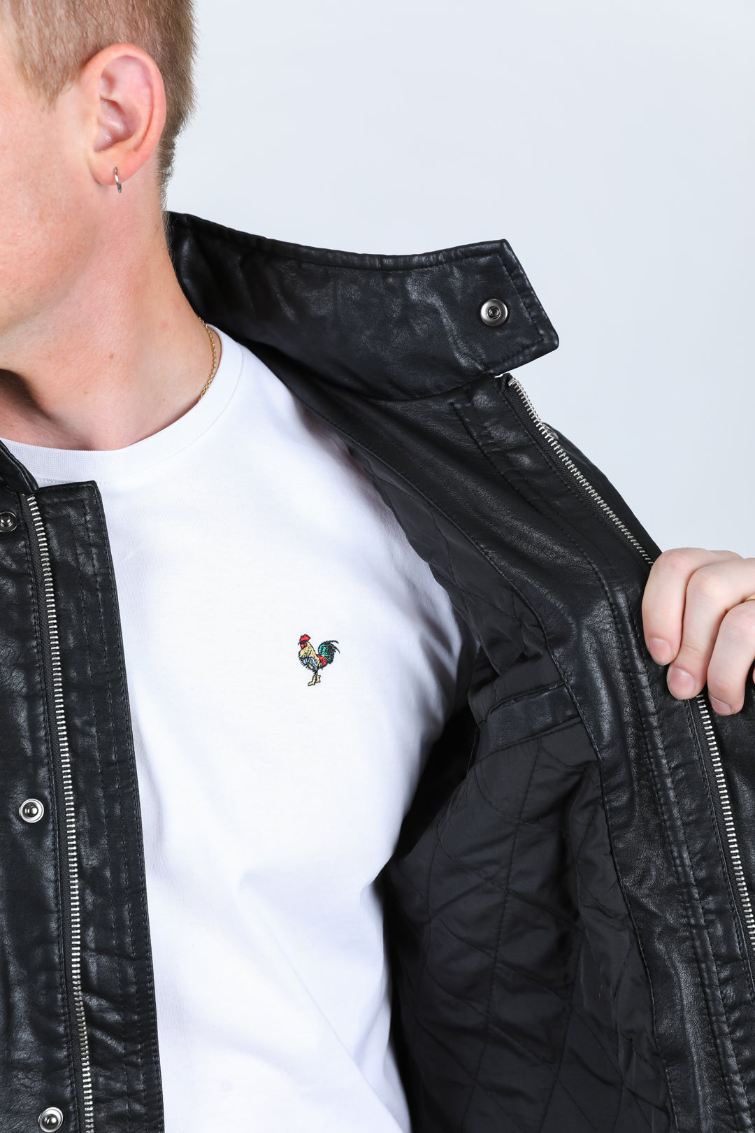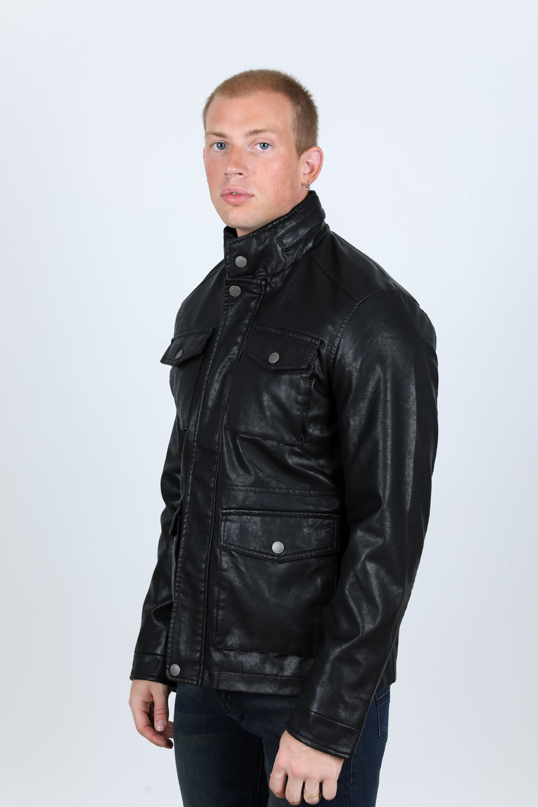 About: A stylish and edgy faux leather biker coat that is perfect for men who want to add a touch of rebellion to their wardrobe. The faux leather construction is durable and weather-resistant, and the black color is classic and versatile.