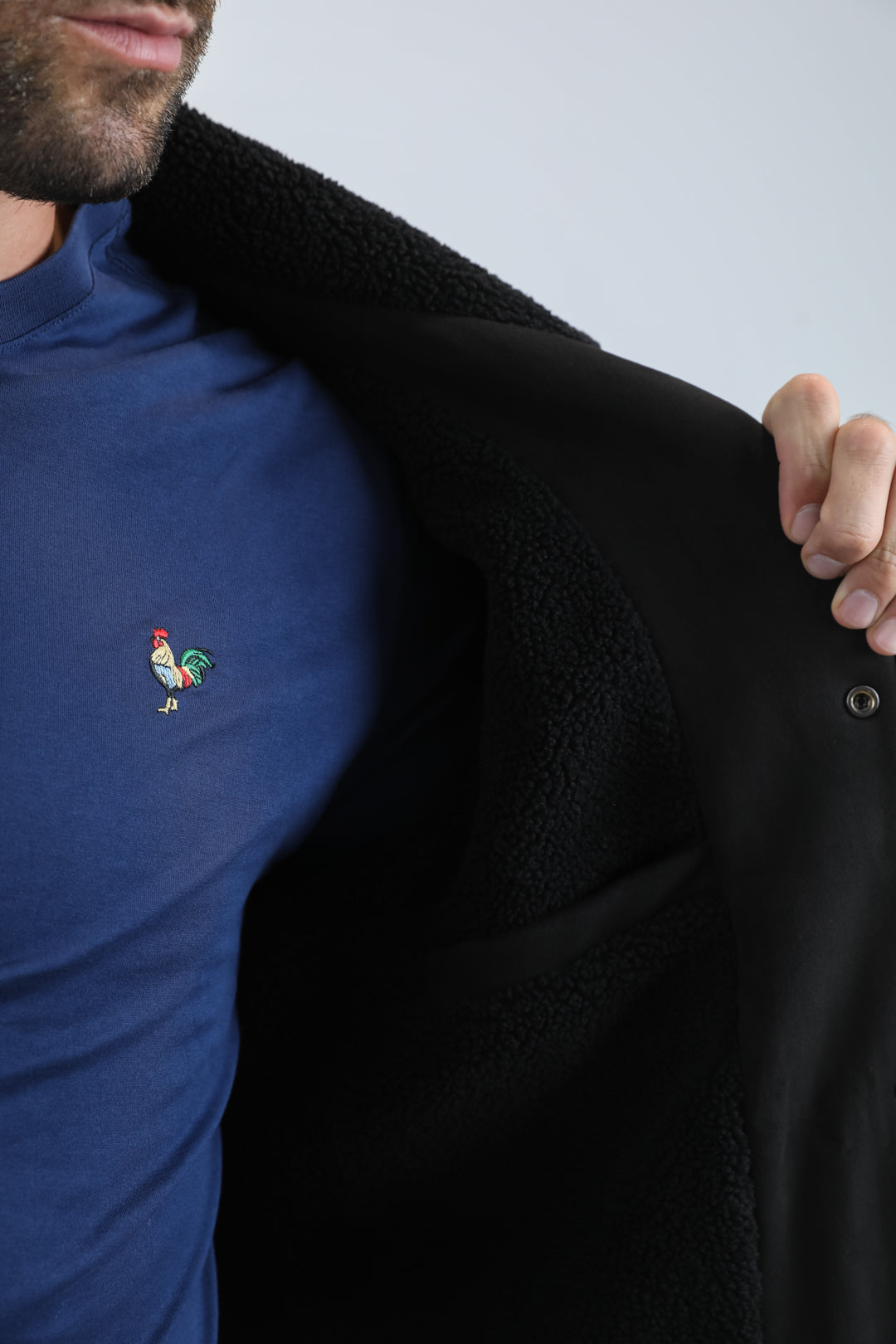 Mens Fur Lined Quilted Faux Suede Black Coat