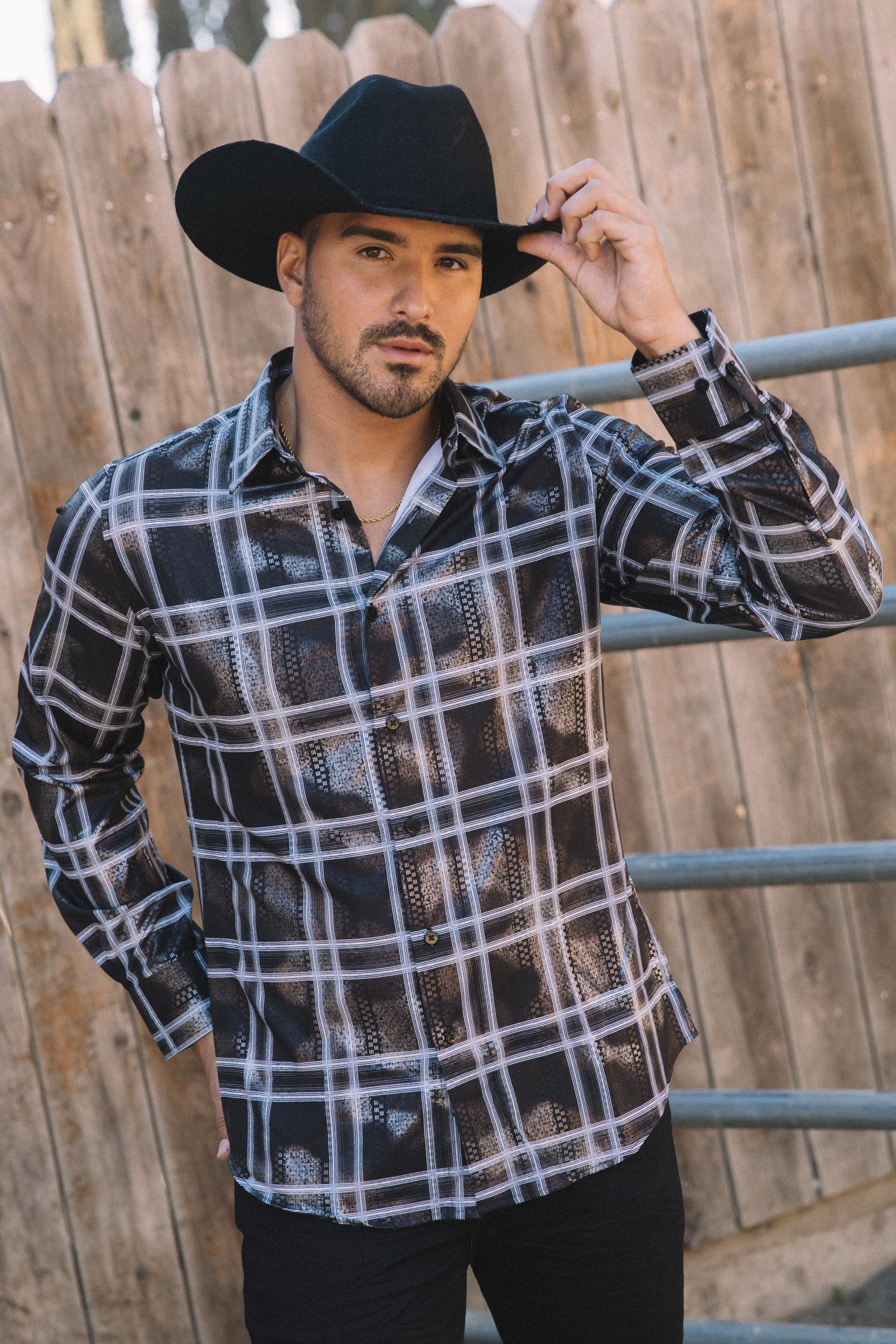 Mens Modern Fit Stretch Foil Fashion Black Shirt