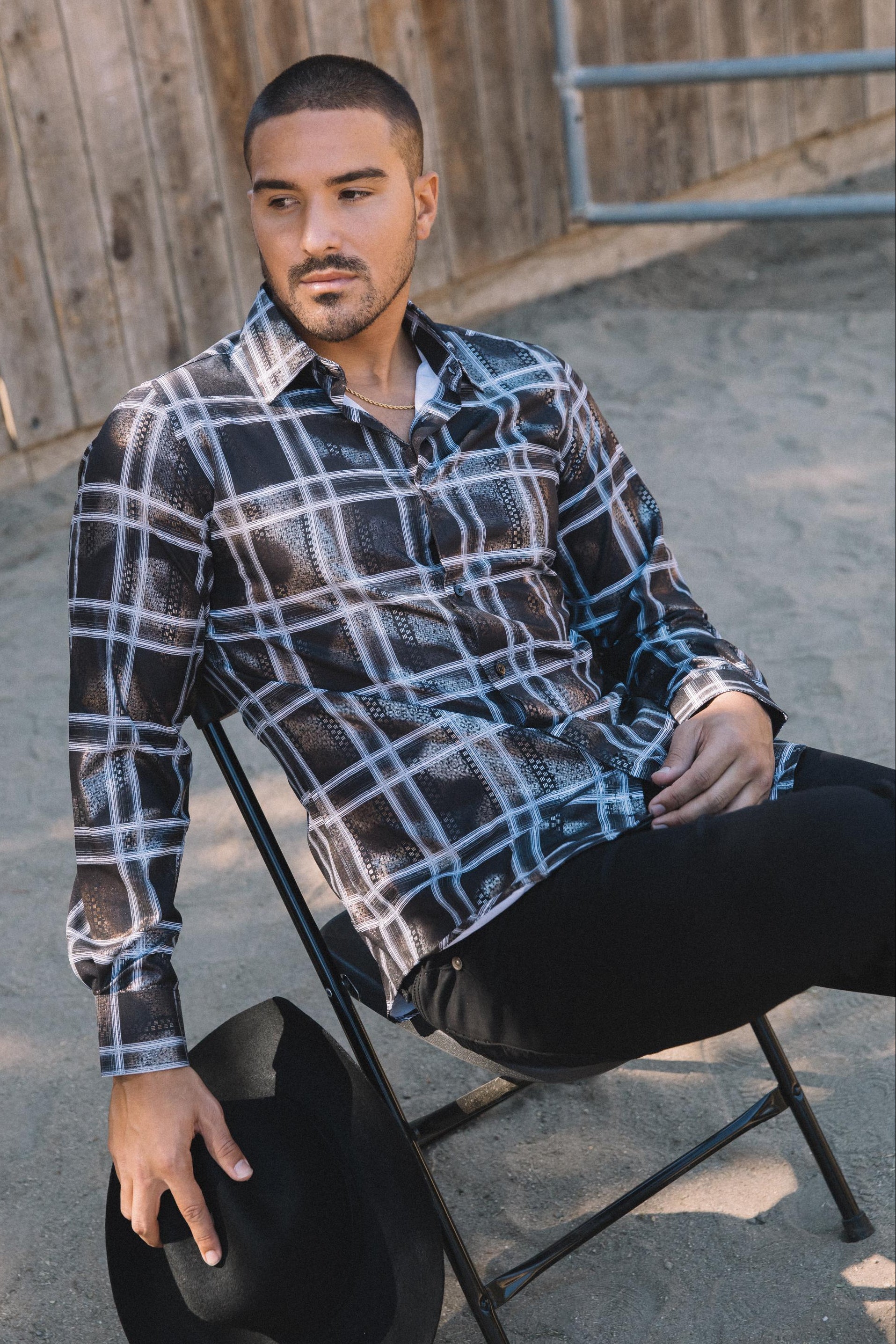 Description: Make a statement with this foiled long-sleeve shirt. The modern fit and luxurious fabric ensure you look and feel your best.