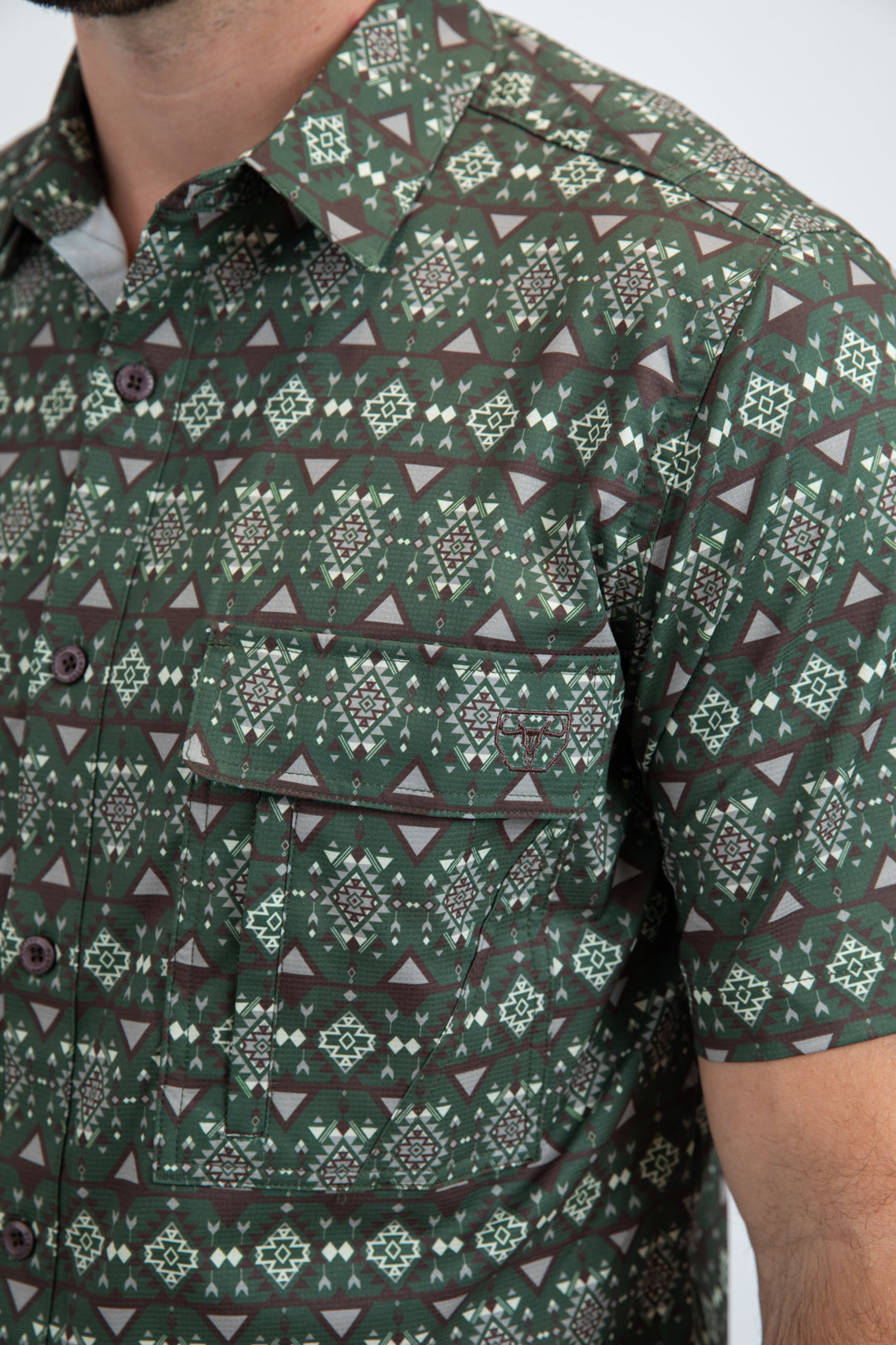 Mens Performance Classic Fit Short Sleeve Green Shirt
