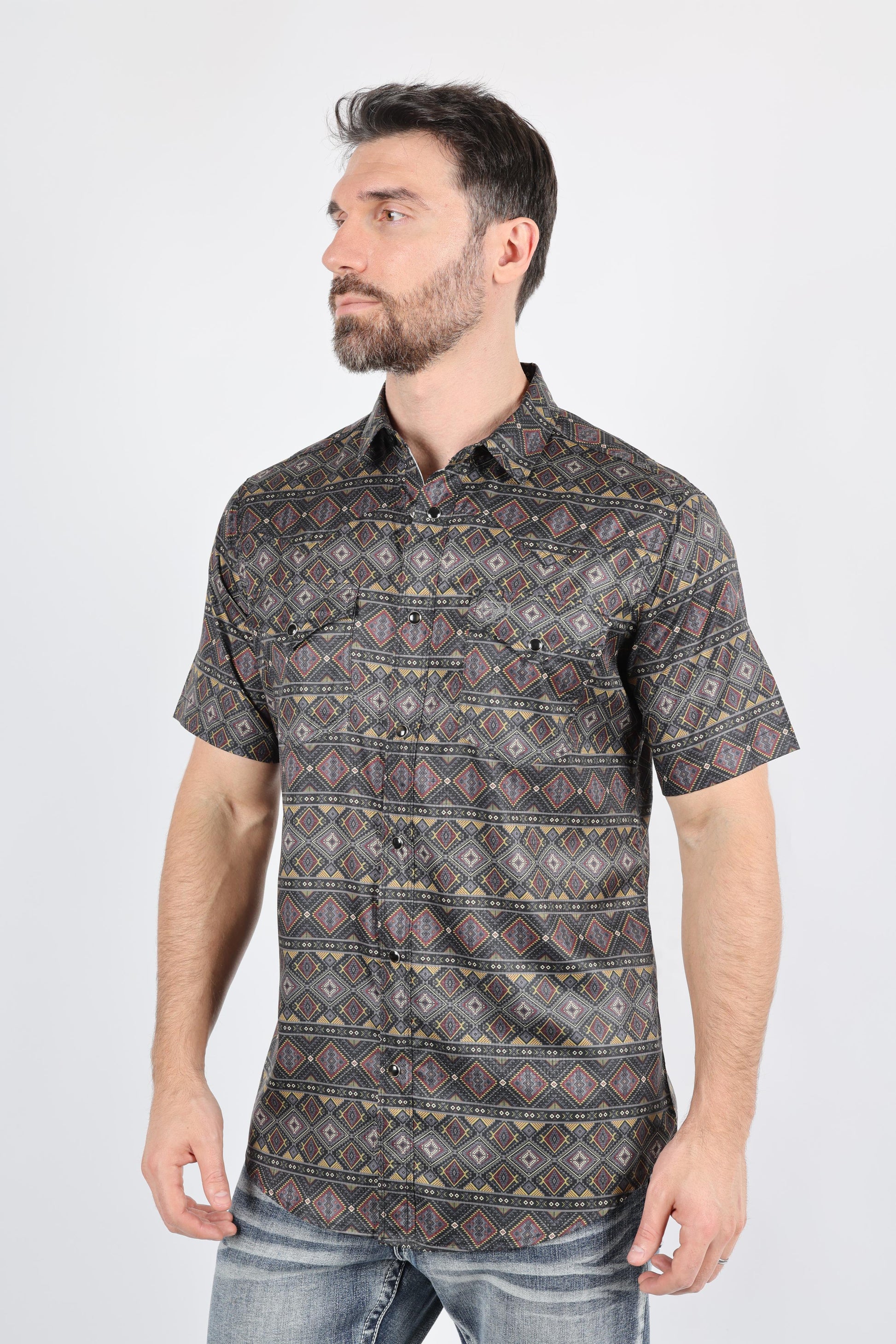 Mens Performance Classic Fit Western Short Sleeve Aztec Print Shirt