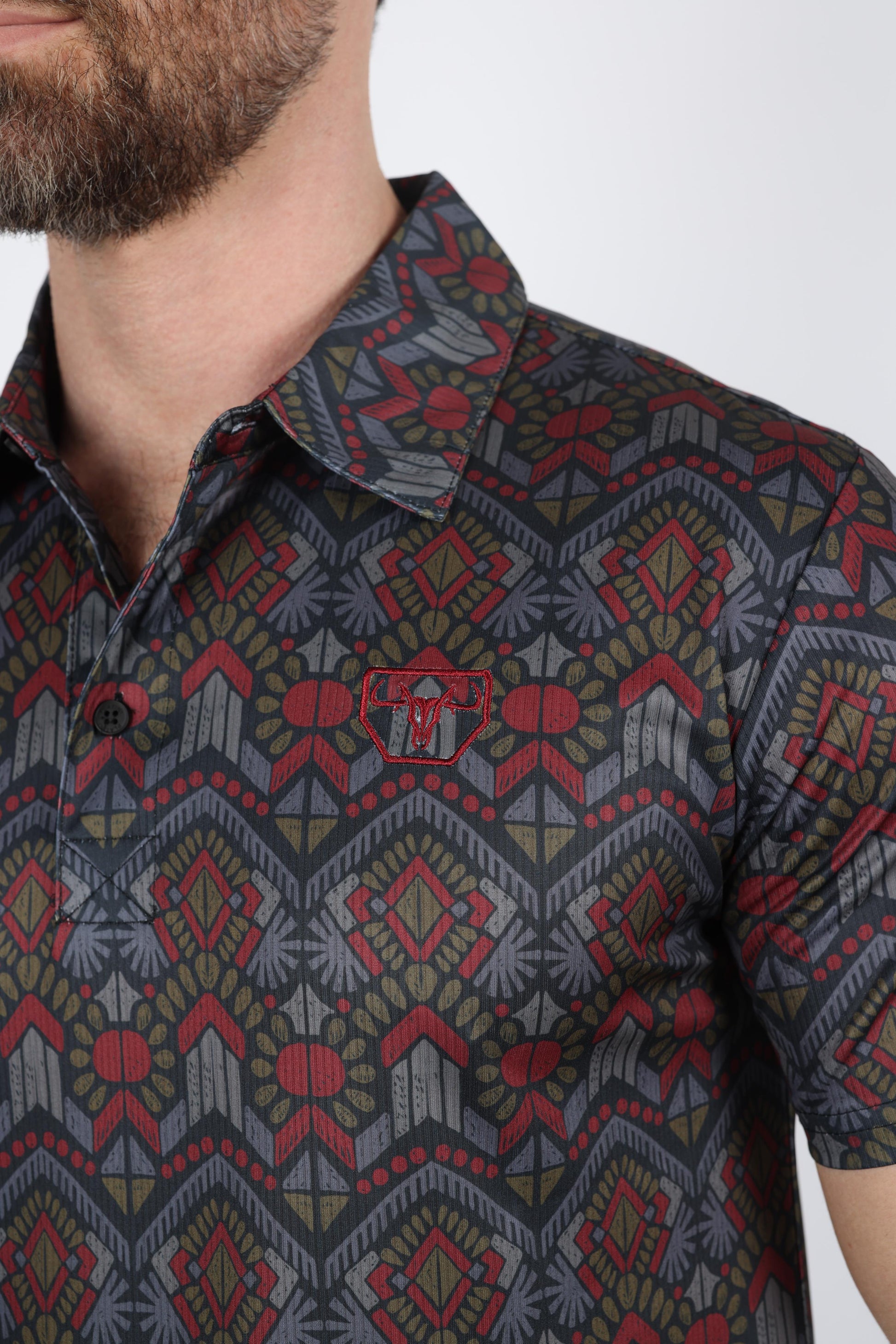 Mens Performance Fabric Modern Fit Stretch Aztec Print Polo