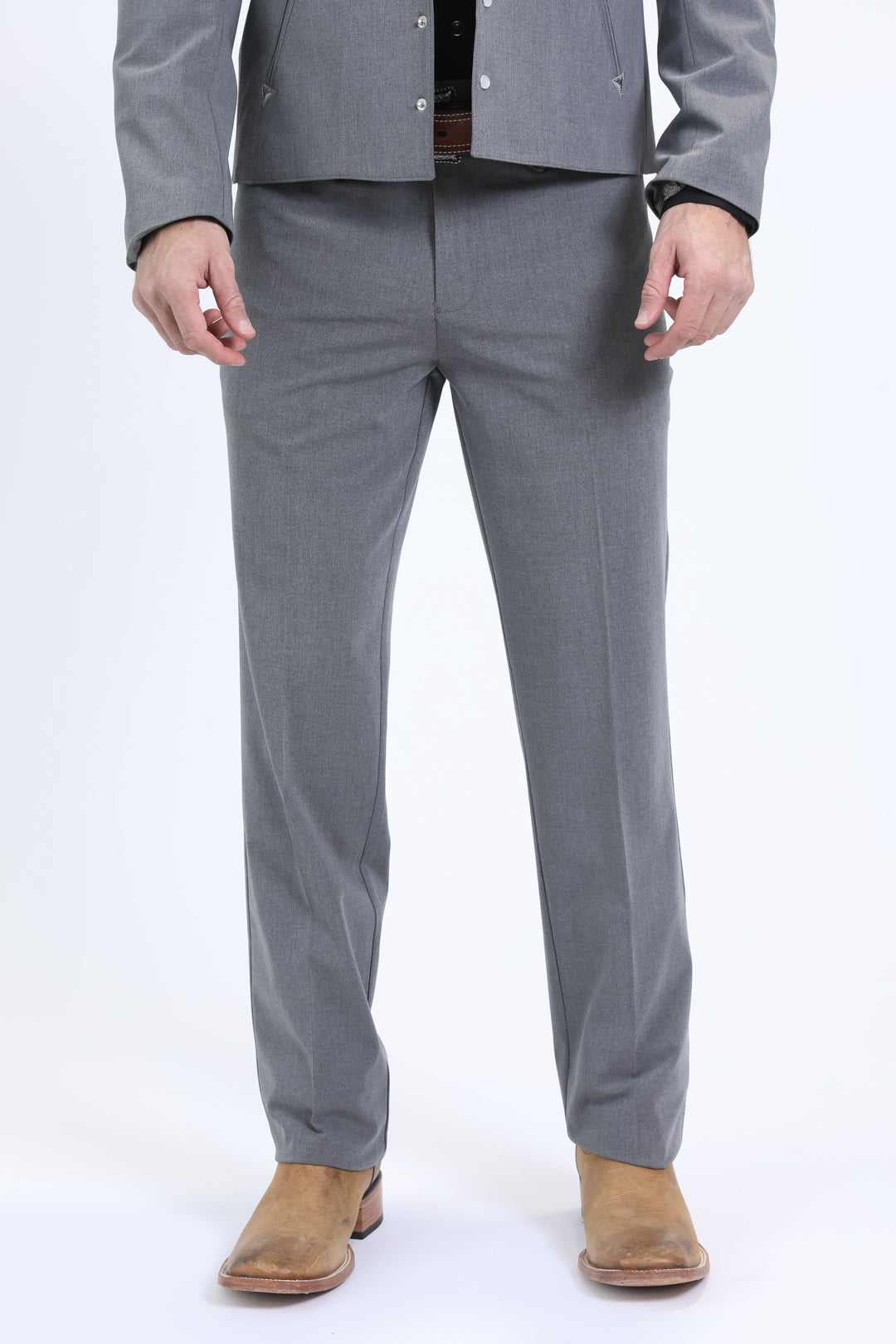 Mens Poly-Stretch Fit Western Grey Suit Pants
