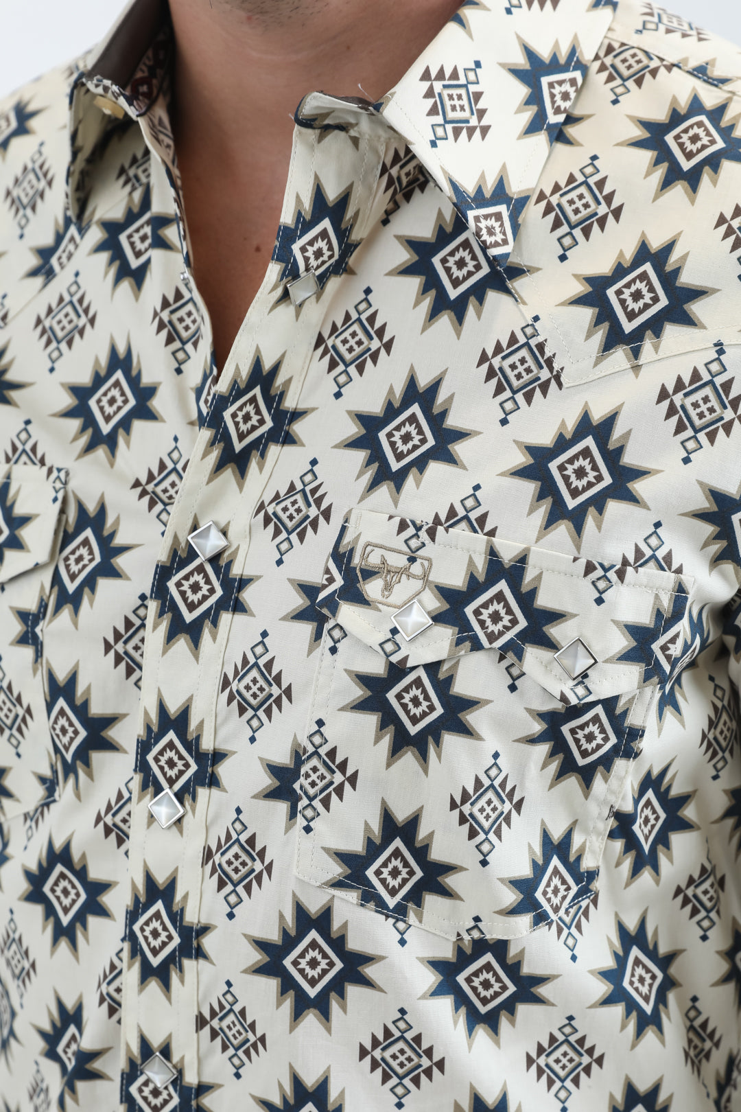 Mens Western Modern Fit Cotton/Spandex Long Sleeve Beige Shirt with Snaps